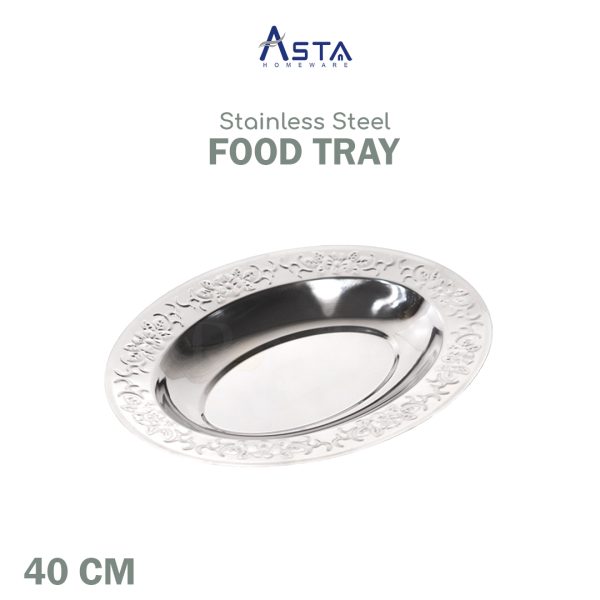 Asta Nampan Stainless Baki Saji Food Tray Tebal Oval – 39 cm
