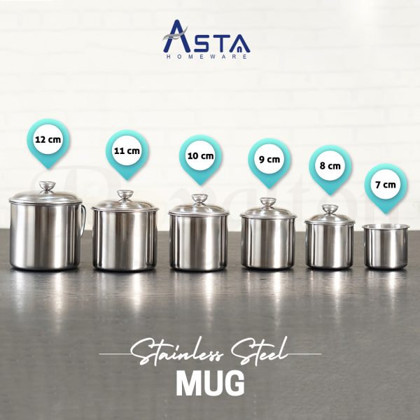 Gelas mug terbuat dari bahan stainless steel yang anti karat. Material LEBIH TEBAL material 100% FOOD GRADE sehingga tidak mudah pesok dan tahan terhadap benturan. Terdapat tutup untuk ukuran diameter : 8cm, 9cm, 10cm, 11cm dan 12cm. Dilengkapi dengan kardus yang cantik, sehingga gelas mug bisa disimpan rapi dalam lemari.