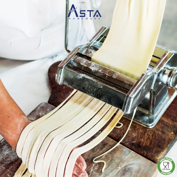 Gilingan mie pasta maker dari Asta Homeware membuatnya menjadi lebih mudah dan hasil lebih rapi. Bisa digunakan untuk membuat mie, spaghetti, pangsit, fettucine / raviolli maupun molen.