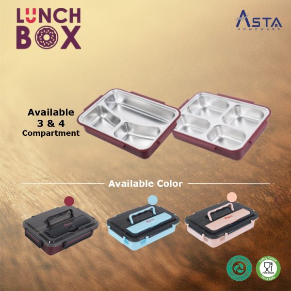 Asta Kotak Makan Stainless Steel 304 Lunch Box Food Grade 3 Sekat | 4 Sekat