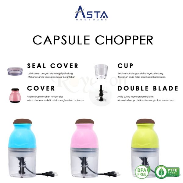 | Tag | blender, blender elektrik, capsule chopper, chopper, penggiling buah, penggiling daging, penggiling sayur, penggiling serbaguna |