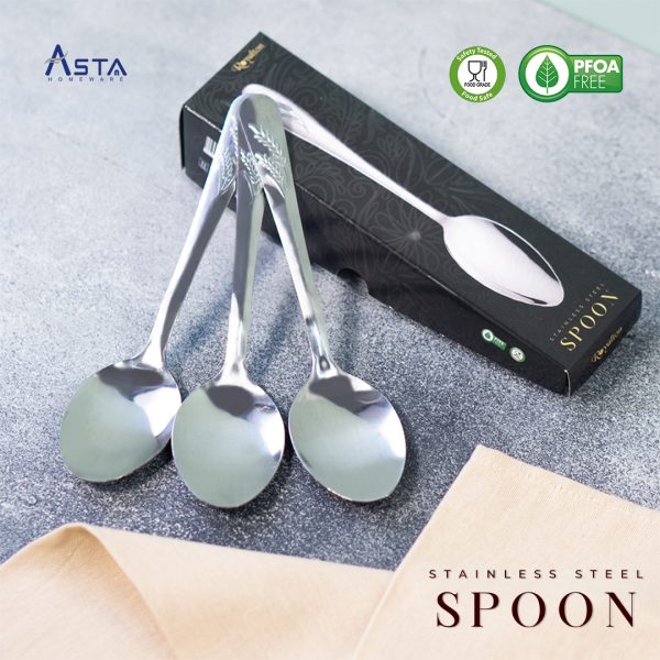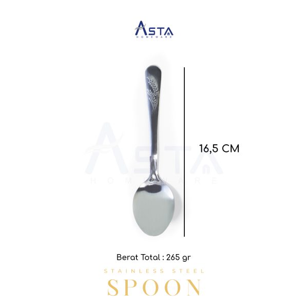 Sendok makan stainless steel, anti karat dengan desain dan motif padi.