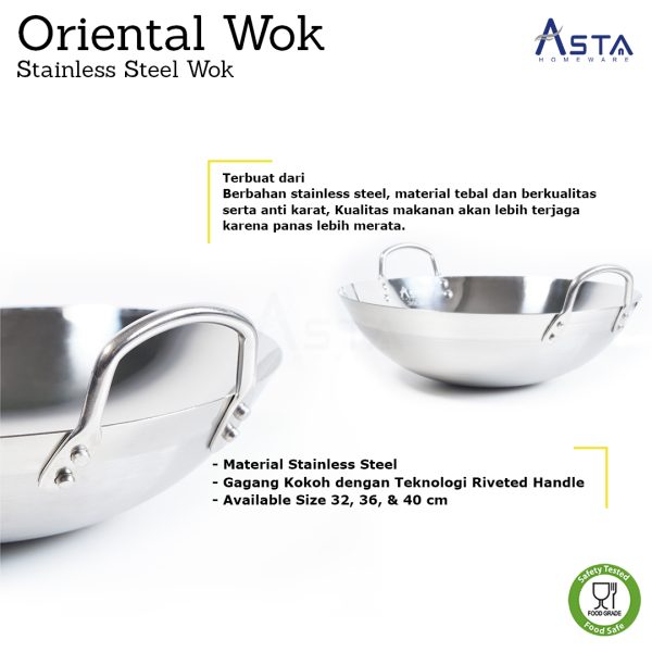 Spesifikasi panci / wajan / wok penggorengan stainless steel Asta :
