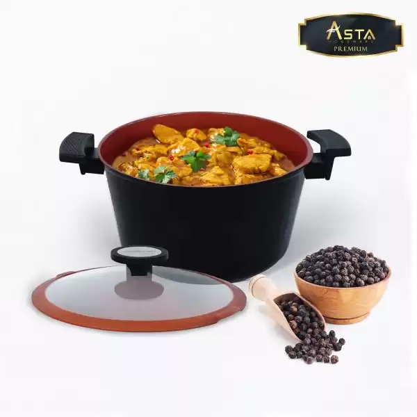 – Produk casserole ( European style soup pan ) dengan tutup kaca dari tempered glass dan diperkuat dengan pinggiran silicone ( silicone rim )